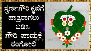 ಗೌರಿ ಹಬ್ಬದ ದಿನ ಸ್ವರ್ಣ ಗೌರಿಯನ್ನು ಮನೆಗೆ ಬರಮಾಡಿಕೊಳ್ಳಲು ಬಯಸಿದರೆ ನೀವು ಈ ಸುಂದರವಾದ , ಜೊತೆಗೆ ಕ್ರಿಯೇಟಿವ್ ಆಗಿರುವ ರಂಗೋಲಿಯನ್ನು ಹಾಕಬಹುದು. ಇದಕ್ಕೆ ಯಾವುದೇ ಚುಕ್ಕಿ