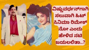 ನಟಿಯಾಗಿ ಸದ್ದು ಮಾಡಿ, ತಮಿಳುನಾಡು ಮುಖ್ಯಮಂತ್ರಿಯಾಗಿ ಮೆರೆದ ಜಯಲಲಿತಾ ಅವರು ವಿಷ್ಣುವರ್ಧನ್ಗಾಗಿ ಹಿಟ್ ಸಿನಿಮಾ ರಿಮೇಕ್ಗಾಗಿ ನೋ ಎಂದು ಹೇಳಿದ್ದರಂತೆ. ಹಾಗಿದ್ರೆ ಆ ಸಿನಿಮಾ ಯಾವುದು? ಯಾಕೆ
