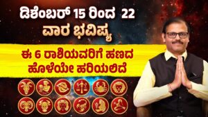 ಡಿಶೆಂಬರ್ 15 ರಿಂದ 22 ವರೆಗೆ ವಾರ ಭವಿಷ್ಯ ಈ 6 ರಾಶಿಯವರಿಗೆ ಹಣದ ಹೊಳೆಯೇ ಹರಿಯಲಿದೆ