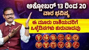 ಅಕ್ಟೋಬರ್ ತಿಂಗಳ ಮತ್ತೊಂದು ವಾರ ಬರುತ್ತಿದೆ. ಅಕ್ಟೋಬರ್ 13 ರಿಂದ 20ರವರೆಗಿನ ಎಲ್ಲಾ ರಾಶಿಗಳ ವಾರ ಭವಿಷ್ಯದ ಕುರಿತಾಗಿ ವಿವರಗಳು ಇಲ್ಲಿವೆ. ಈ ವಾರ ಮೂರು ರಾಶಿಗಳ