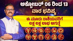 ಅಕ್ಟೋಬರ್ ನ ಎರಡನೇ ವಾರಕ್ಕೆ ಕಾಲಿಡುತ್ತಿದ್ದೇವೆ. ಅಕ್ಟೋಬರ್ 06 ರಿಂದ 13ನೇ ತಾರೀಕಿನವರೆಗಿನ ವಾರ ಭವಿಷ್ಯ ಇಲ್ಲಿದೆ. ಈ ವಾರ ಮೂರು ರಾಶಿಯವರಿಗೆ ಲಕ್ಷ ಲಕ್ಷ ಧನಲಾಭ